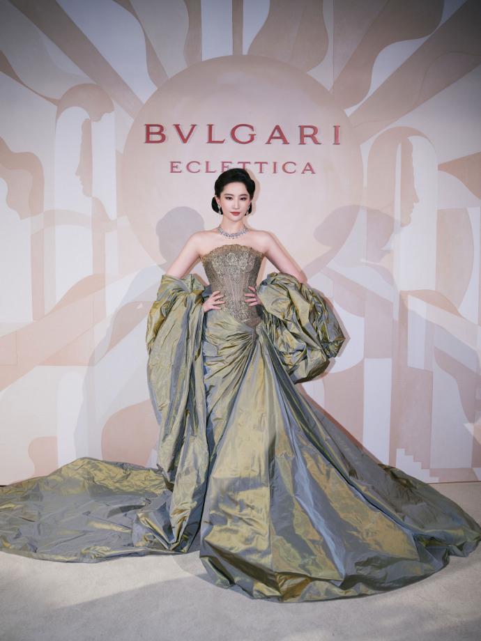 近日,刘亦菲出席活动。她身着橄榄绿抹胸裙,搭配钻石珠宝,尽显华贵优雅气质。